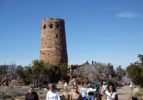 =Desert View= グランドキャニオンのビレッジから東へ車で30分位のところにあるDesert Viewというポイントに向かう.ここはイーストリムの終点でグランドキャニオン観光としては東の端.Watch Towerという展望台があり,ショッピングストアなんかもあるのである.下の写真のでそびえ立っているのがWatch Tower.1932年に造られたそうだ.