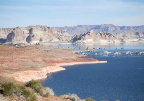=ロウアー・アンテロープキャニオン ボートツアー= 16時,ワーウィープマリーナから出るロウアー・アンテロープキャニオンのボートツアー.16時といってもまだ日は高い.